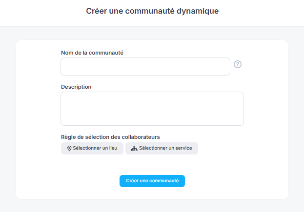 Vous pouvez créer des communautés dynamiques pour communiquer plus efficacement par service, lieu ou services et lieux spécifiques.