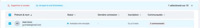 Toujours dans l'onglet Collaborateurs de votre administration, cochez la case à gauche du prénom de la personne en question, puis cliquez sur Supprimer le compte.