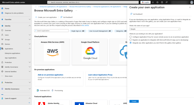 Identity > Applications > Enterprise Applications > + New Application > + Create your own application > Sélectionner "Integrate any other application you don't find in the gallery"