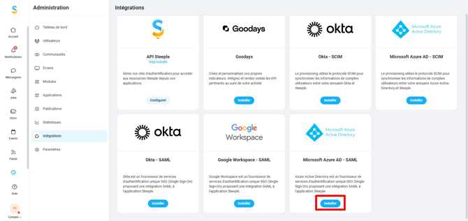 NOTE : il est impératif que le SSO soit configuré avec AzureAD pour pouvoir par la suite utiliser le provisioning via le protocole SCIM. Il est donc impossible de ne configurer que le provisioning avec Azure Active Directory. La configuration de Steeple ne le permet pas non plus.